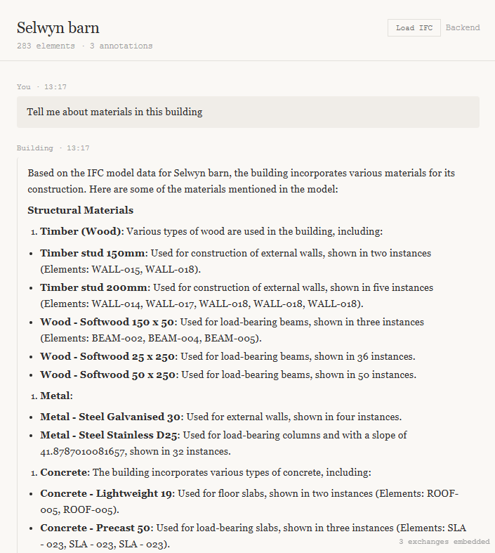 using LLMs to create bespoke software to analyse whole BIM